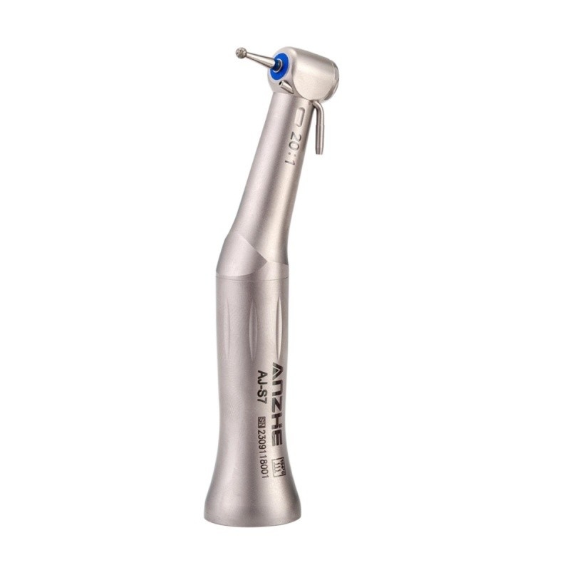The 20:1 dental implant handpiece is a specialized instrument used in implant dentistry, designed for precise and controlled drilling during surgical procedures. The 20:1 implant handpiece operates at a gear reduction ratio of 20:1, meaning that for every 20 rotations of the handpiece, the attached bur rotates once. This configuration provides significant torque and control for delicate procedures. The dental implant handpiece is essential in modern implant dentistry, providing the necessary torque, control, and precision to enhance surgical outcomes.
